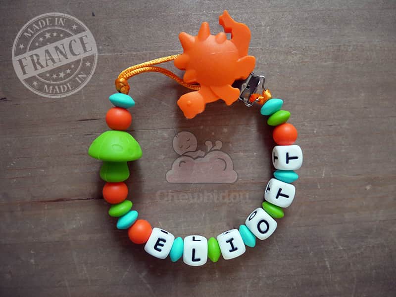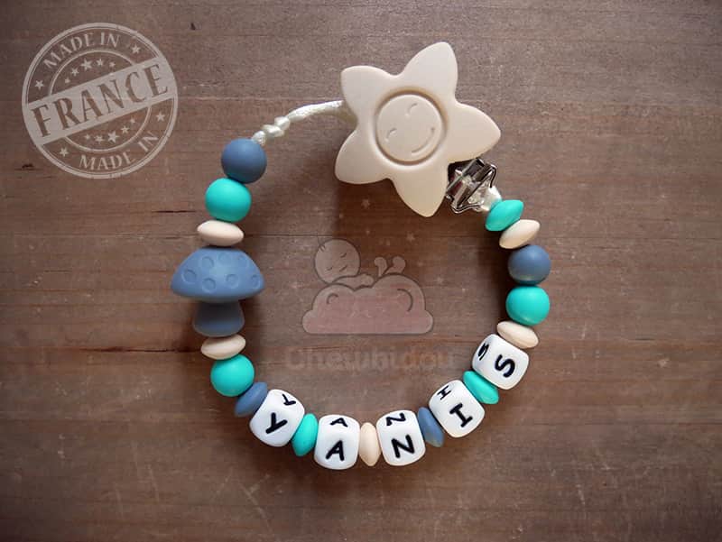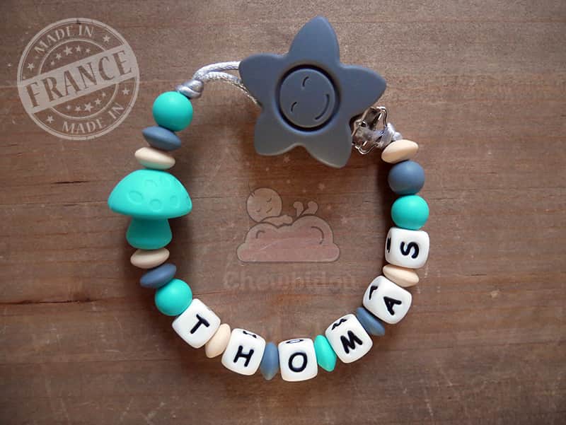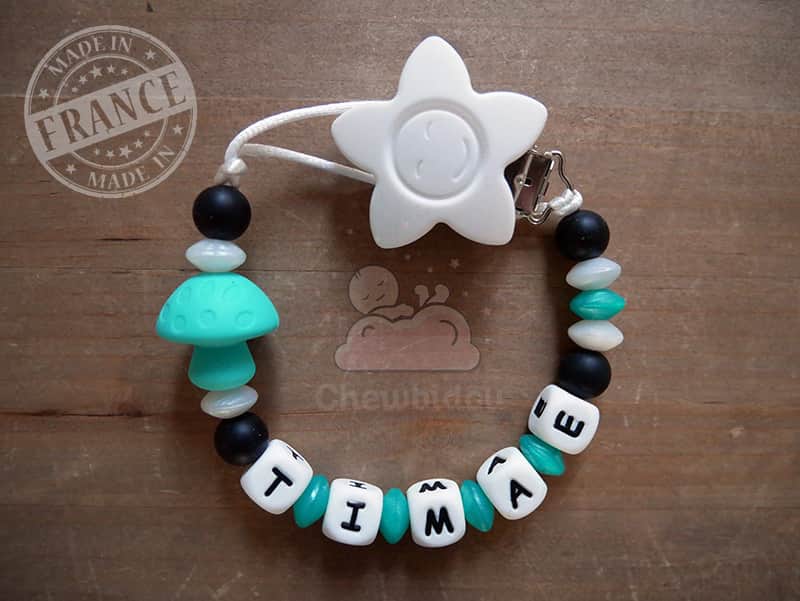 Attache tétine personnalisée – Champignon – Coloris au choix